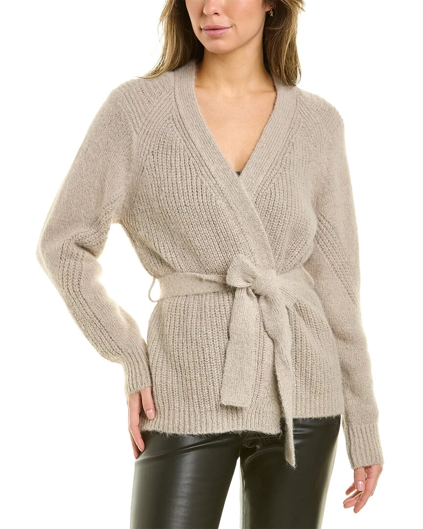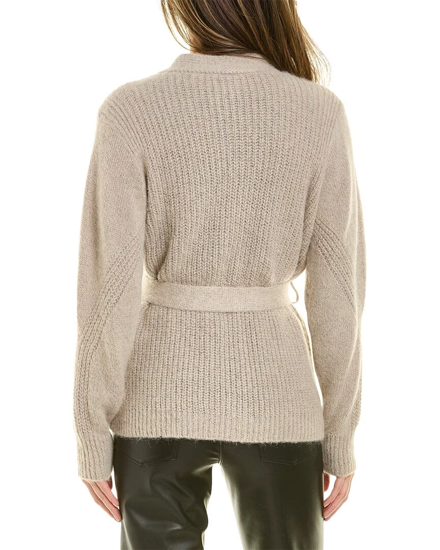 - Boris Alpaca & Linen-Blend Cardigan In Beige With V-Neck And Self-Tie Sash At Waist