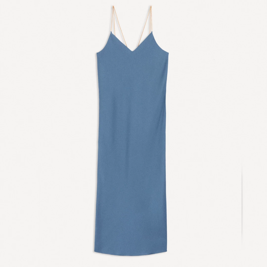 A Slip Of A Dress This Ultraglamorous Chiara Style Is A Nod To The 70S And The Labels Feminine Tropes This Midi Dress Has A Vneckline And Flowing Drape Its Cut In A Flowing Satiny Fabric With Slight Shine The Killer Detail Is The Metal Chain Straps That Cross Over In The Back And Are Worn Like A Jewel On Beautiful Bare Skin A Delicate Sensual And Feminine Dressbackless Dressvnecklinemetal Chain Straps100 Polyester