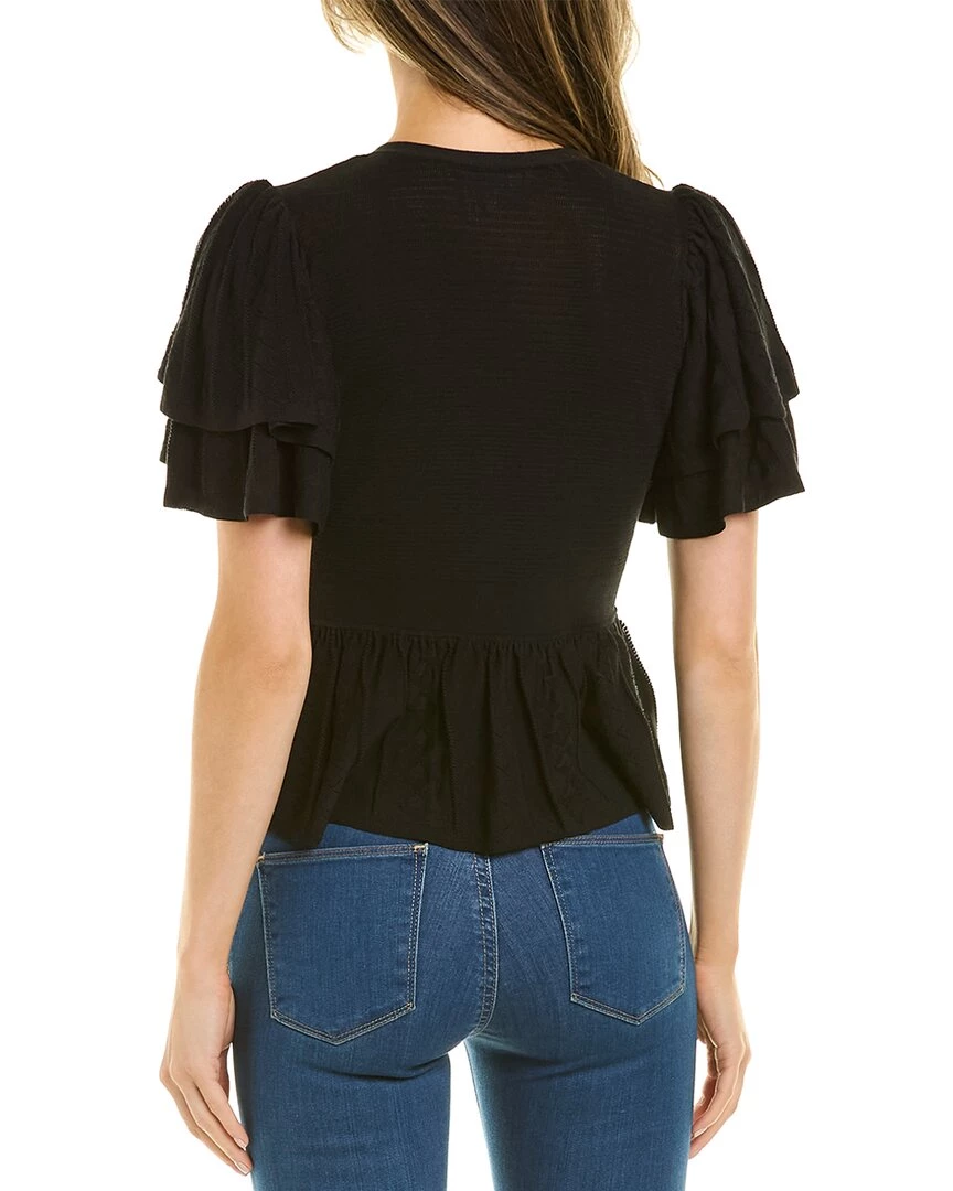 - Cropped Cardigan In Black With Flare Sleeves And Ruffle Hem