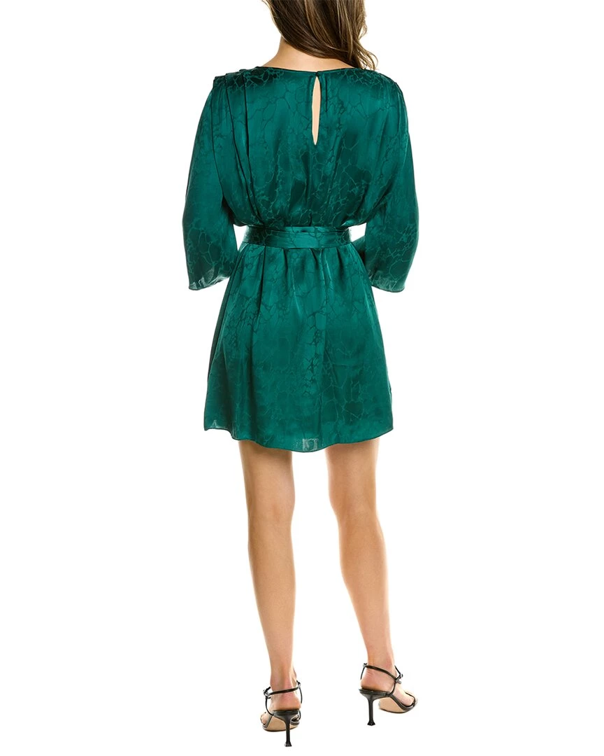 - Doha Mini Dress In Emeraude With Pleated Shoulders, 3/4-Length Sleeves, And Belted Waist