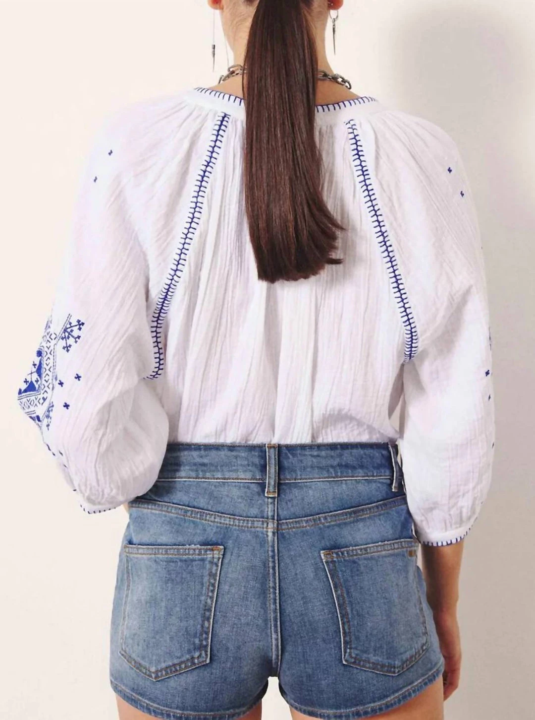 Embroidered blouse. V-neckline. 3/4 sleeves