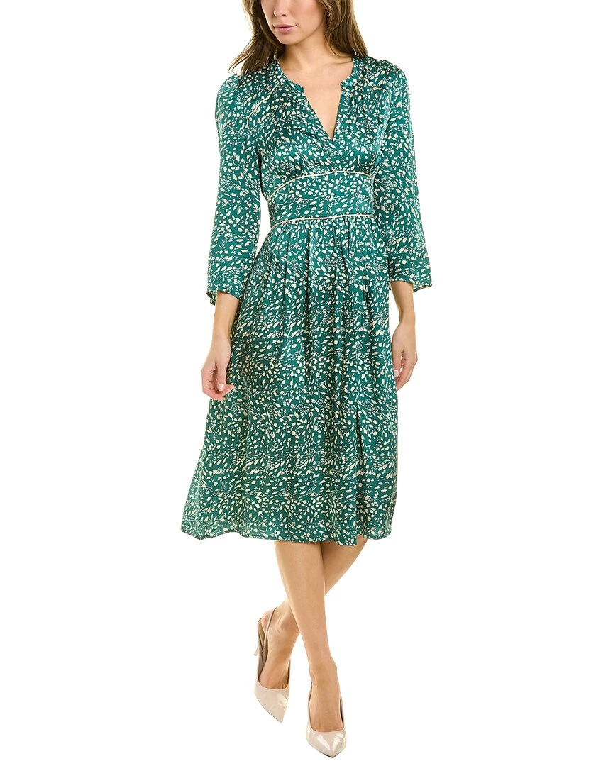 - Esme Midi Dress In Vert With V-Neck, 3/4-Length Sleeves, And Shirred Waist