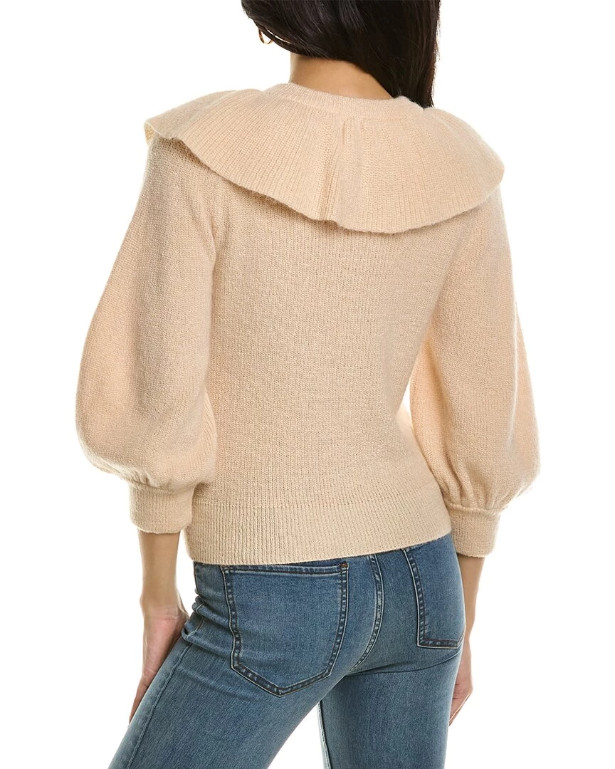 - Hoa Wool & Mohair-Blend Sweater In Vanilla With Ruffle Trim At Neckline And Balloon Sleeves
