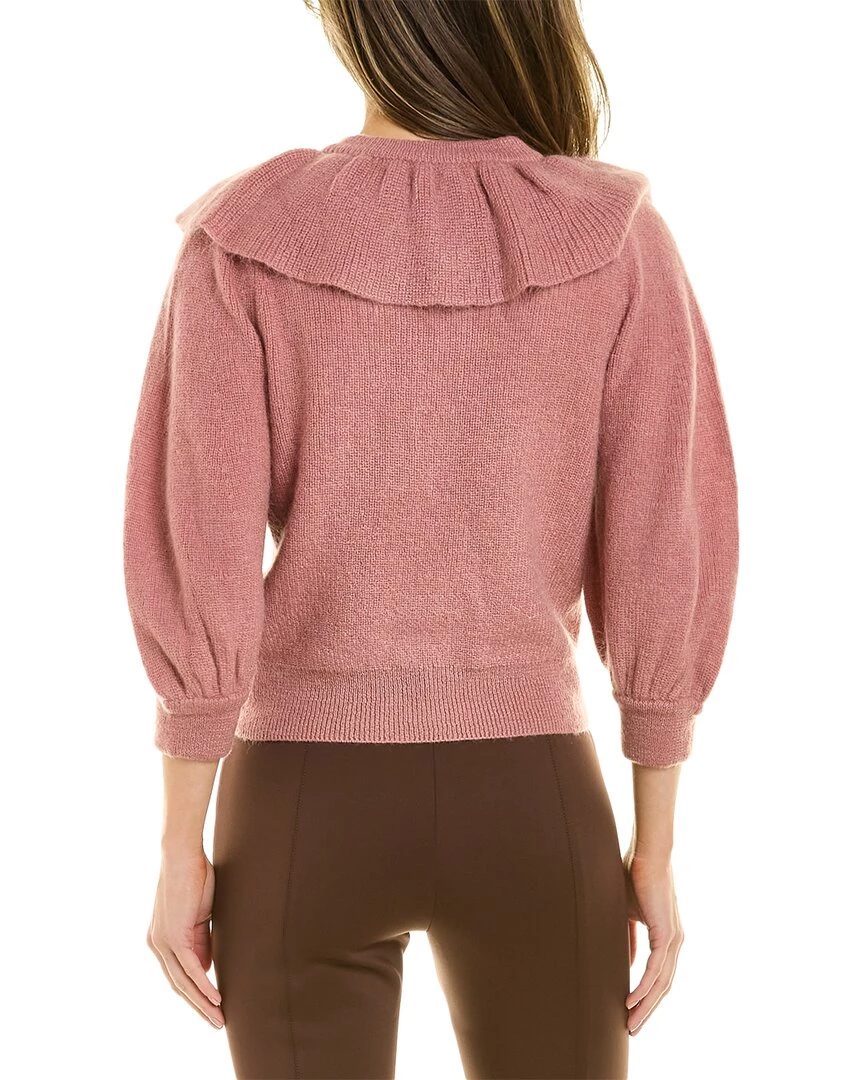 - Hoa Wool & Mohair-Blend Sweater In Blush With Ruffled Neckline And 3/4-Length Sleeves