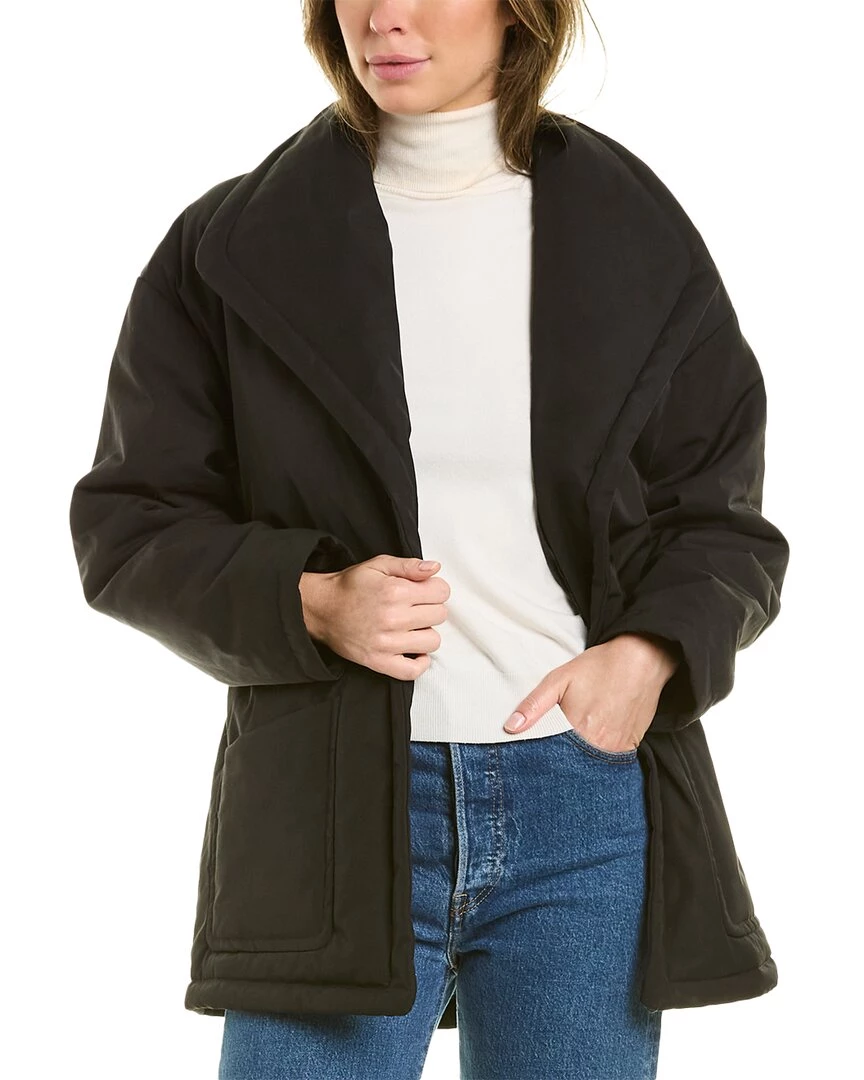 - Issa Oversized Jacket In Noir With Spread Collar, Dual Front Pockets, And Belted Waist