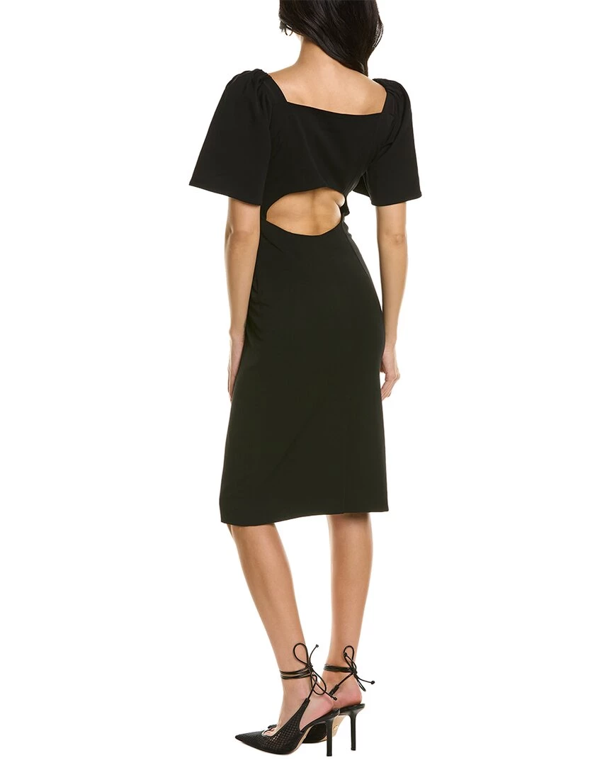 - Midi Dress In Black With Off-Shoulder Puff Sleeves And Cut Outs At Back