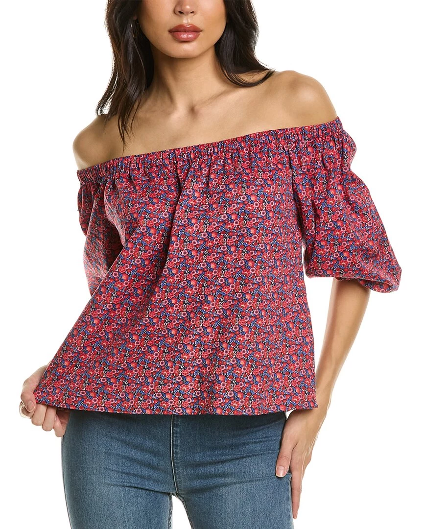 - Off-Shoulder Blouse In Red Floral With 3/4-Length Puff Sleeves